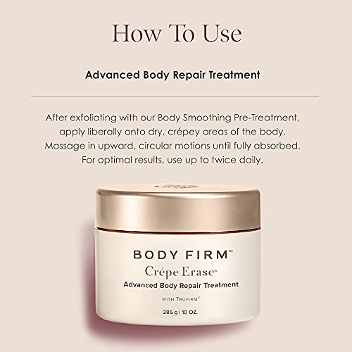 The perfect complement to our TruFirm Complex, Crépe Erase’s 9 Super Hydrators have been re-imagined to hydrate and visibly reduce crépiness even faster and more effectively than our original formula. This new signature combination absorbs faster into the skin without leaving any greasy residue. These moisture-rich lipids and fatty acids contribute to the formula’s light and airy texture which allows for effortless application. Our unique hydration complex is made up of: olive oil, squalane, cocoa butter, coconut oil, grapeseed oil, vitamin E + a trio of glycerides to lock in essential moisture and rehydrate dry, crépey texture.