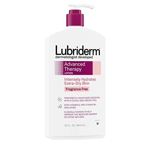 Details: Lubriderm Advanced Therapy Fragrance-Free Daily Moisturizing Lotion helps relieve extra-dry skin. From a dermatologist-developed brand, this moisturizing lotion is clinically shown to help moisturize for 24 hours, and transform dry skin into healthy-looking, more resilient skin. Formulated with vitamins E and Pro-Vitamin B5 plus lipids, this fragrance-free lotion replenishes and strengthens your skin’s moisture barrier. Plus, its formula is non-greasy with a clean, comfortable feel.