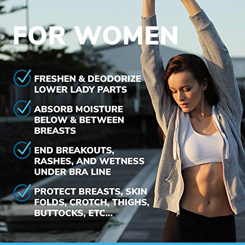 • “DOWN THERE” COMFORT & FRESHNESS. For swampy, sticky, itchy, smelly body areas. Stay fresh, stop groin, breast & butt stickiness, chafe, and odor.
