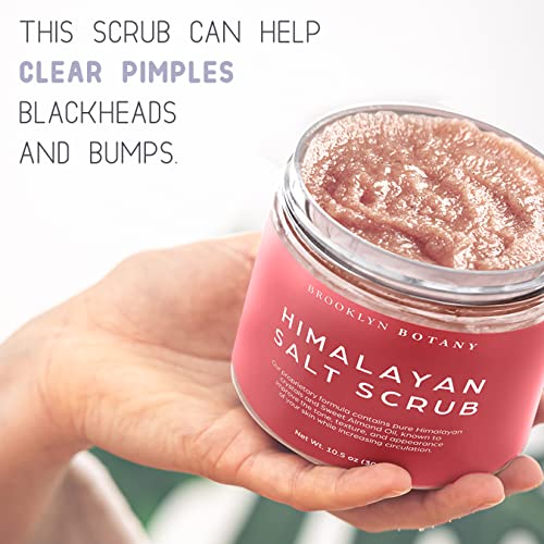 Brooklyn Botany Himalayan Salt Body Scrub – Moisturizing and Exfoliating Body, Face, Hand, Foot Scrub – Fights Stretch Marks, Fine Lines, Wrinkles – Great Gifts for Women & Men – 10.5 oz