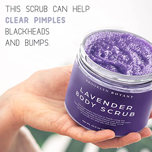 Brooklyn Botany Lavender Body Scrub – Moisturizing and Exfoliating Body, Face, Hand, Foot Scrub – Fights Stretch Marks, Fine Lines, Wrinkles – Great Gifts for Women & Men – 10.5 oz