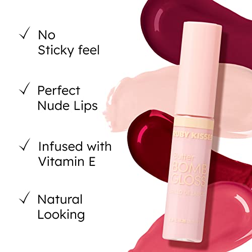 Ruby Kisses Lip Gloss Butter Bomb Gloss Non-Sticky Lip Gloss Vitamin E Natural Nude Lip Makeup – 7.8mL (0.26 US fl.oz) (Like A Virgin)