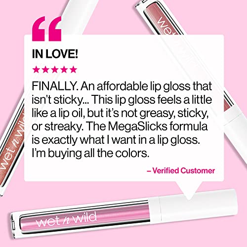 Details: Pucker up for the intense shine, color, and hydration your lips crave. Mega Slicks tinted lip gloss features gorgeous color with a brilliant shine that not only makes lips appear fuller and smoother, but also promotes firmness and hydration. A lip-loving blend of Jojoba Glaze, Maxi Lip peptides, Hyaluronic Acid, and Collagen grants your pout everything it needs to sumptuously soft with kissable color. Wet n Wild starts as everyone’s first and remains a lifelong destination for vibrant and accessible beauty. Delivering over 40 years of trend-forward and all-inclusive innovations, we are your trusted beauty expert that will keep you looking fabulous without ever betraying your budget. From the bold ‘n’ bright to the neutral ‘n’ nuanced, we set out to spoil you with options while setting the gold standard of achievability. So go ahead, get your feet wet with us again and go wild with your imagination!