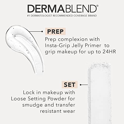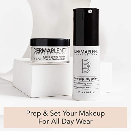 Amazon is an authorized seller of Dermablend products. This Amazon exclusive ‘set & prep your makeup’ bundle includes a full size Insta-Grip Jelly Primer, 1oz, & a full size translucent Loose Setting Powder, 1oz. Insta-Grip Jelly Primer is a 3-in-1 multi-tasking face primer for makeup that acts as a gripping primer, instant moisturizer and a tightening mask. Its unique sticky 100% clear jelly texture absorbs quickly to a smooth, natural finish and extends makeup wear with up to 24-hour staying power. This non silicone face primer for foundation makeup smooths and tightens skin texture, making it an ideal primer face makeup for dry skin & aging skin. Dermablend Professional’s loose face powder makeup is a weightless, translucent finishing powder makeup that sets foundation and concealer for up to 16 hour wear. This makeup setting powder locks in makeup to be smudge- and transfer- resistant, making it an ideal makeup baking powder. The micronized formula makes this face setting powder translucent and sheer with a smooth finish. Foundation powder makeup absorbs excess oil and mattifies complexion. This Dermablend foundation primer + makeup setting powder bundle is: dermatologist tested for safety, non-comedogenic, sensitive skin tested, allergy tested, cruelty-free, fragrance-free, SLS-free, triclosan-free, phthalate-free.