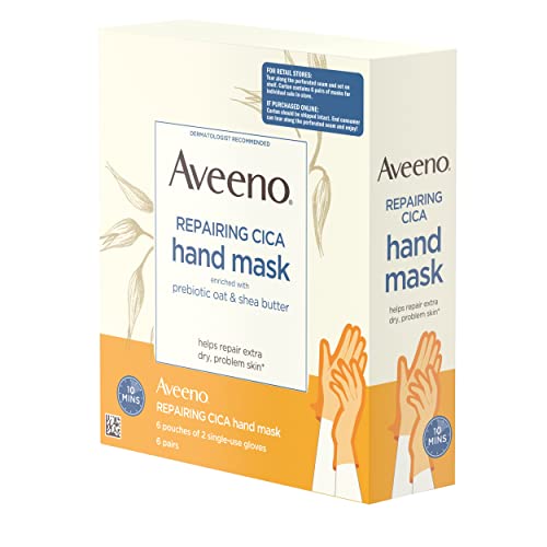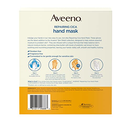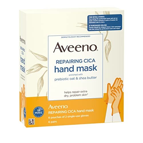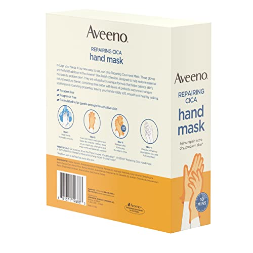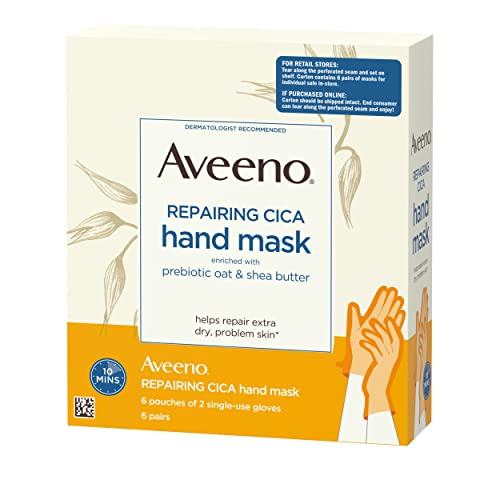 • 6 pairs of single use gloves. Restore essential moisture to extra dry skin with Aveeno Repairing CICA Hand Mask. These easy to use, non-drip hand gloves are from the Aveeno Skin Relief collection
