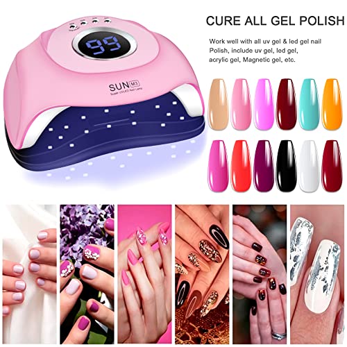 - 4 TIMER SETTINGS: The 180 watts uv gel nail lamp display shows the nail drying time, makes your curing process more visible. Flexible drying options with 4 timer setting: 10s/30s/60s/99s mode, 99s is no pain mode, it will increase power gradually, design for someone who sensitive nail beds. Smart enough to follow the time requirements of your different gel nail polish. Different types of gel polish need different curing time due to the difference in the ingredient.