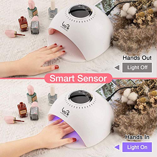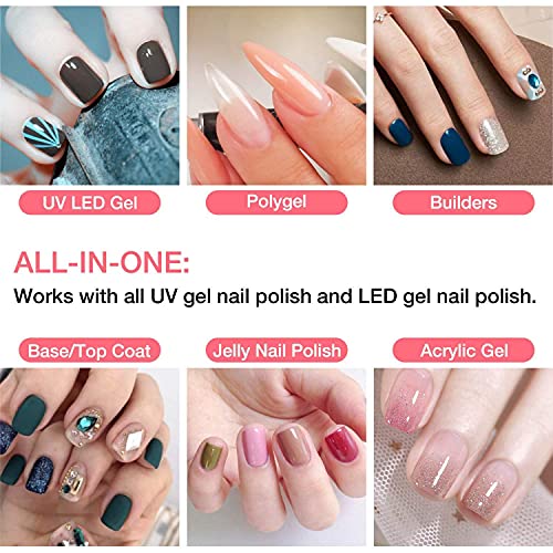 - Perfect choice for nail salon – LED UV nail lamp fits all types of UV gel and LED gel, nail polish (Base Coat, Top Coat, Color Gel, Hard Gels, Builder, Acrylic, sculpture gel, gem glue etc), Which effectively shorten the curing time. No pain and no harm for skin and nails.